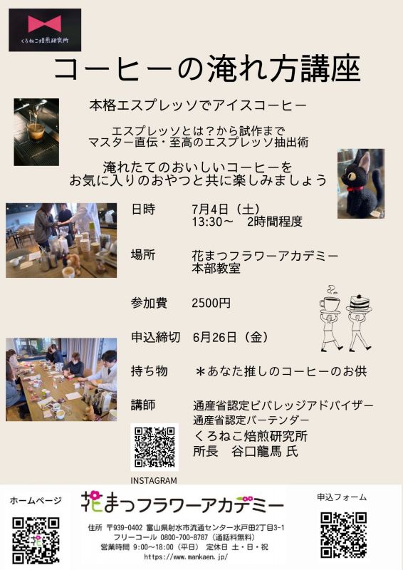 次回は7月4日(土)アイスエスプレッソです コーヒー講座詳細はこちら↓↓ https://www.mankaen.jp/course/info.php?id=304